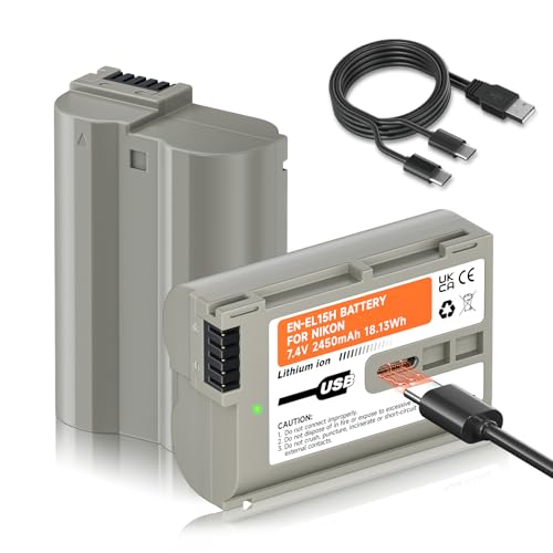 Mspalocell EN-EL15 USB-C 2450mAh batteri för Nikon D850 D810 D810a D800e D800 D780 D750 D610 D600 D500 D7000 D7100 D7200 D7500 Z8 Z7II Z7 Z6II Z6 EN-EL15 EL15a EL15b EL15c, 2 stycken batteri