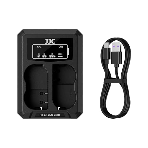 JJC USB dubbel batteriladdare för Nikon Zf Z7II Z7 Z6II Z6 D850 D750 D610 D600 D500 D7500 D7200 D7100 D7000 D810A D810 D800E D800 etc. Kameror ersätter Nikon EN-EL15/EN-EL15a/EN-EL15b/EN-EL15c