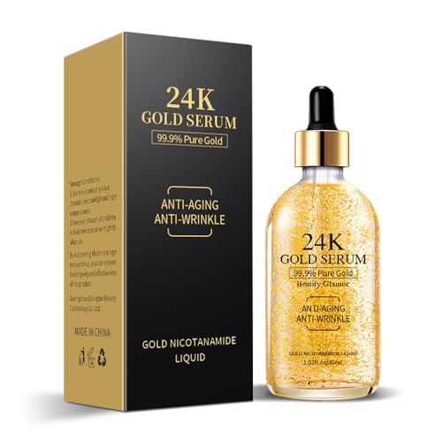 24k Gold Serum for Face, Skin Moisturizing Anti-Aging Anti-Redness Acne Treatment Essence Cream for Dark Spots & Fine Lines, Skin Care Gold Essence Nikotinamid Serum (30 ml)