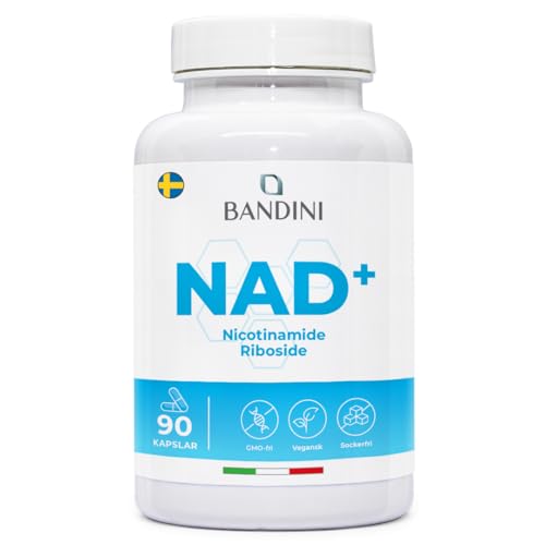 Bandini® NAD+ Nicotinamide Riboside Chloride 300mg per portion | 3 månader| Nikotinamid-ribosidklorid NAD booster | Mot trötthet bra för energi | 90 vegetariska kapslar | Premium & Vegan Anti-Fatigue