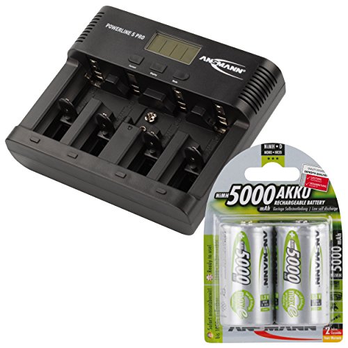 ANSMANN Batteriladdare för AA/AAA/C/D/9V Block NiMH batterier – batteriladdare med 5 laddningsprogram: Laddning, urladdning, testning, uppdatering, snabbladdning USB – Powerline 5 Pro 2 x 5 000 mAh