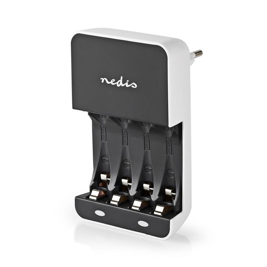 Nedis NiMH Batteriladdare AA / AAA | 1.2 V DC | Underhållsladdning | Euro / Typ C (CEE 7/16) | Batteritypsenergi: AA / AAA | Svart / Vit