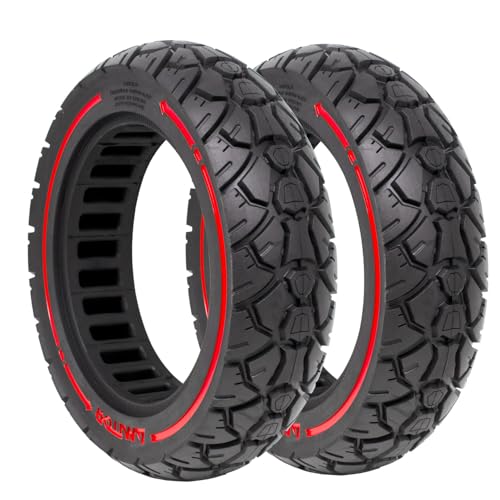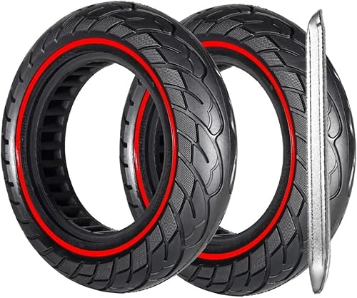 G.V.SHOP® Massiva hjul 10 x 2,5 tum 45 mm för elektrisk skoter, massivt gummi, NINEBOT G30 Max, halkfritt, fast däck (Röd 2st)
