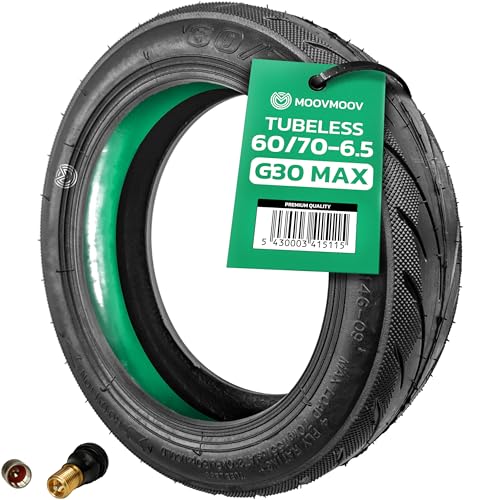 MOOVMOOV Ninebot G30 Max Tubeless 60/70-6,5 däck med punkteringsgel och ersättningsrörlös ventil - 10" däck för Ninebot Max G30 skoter