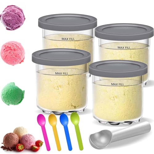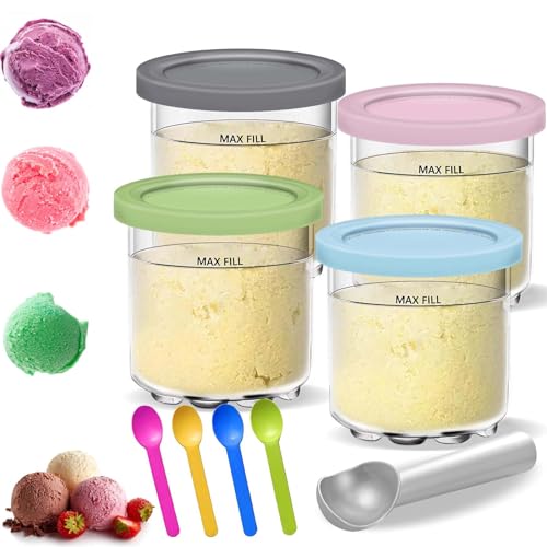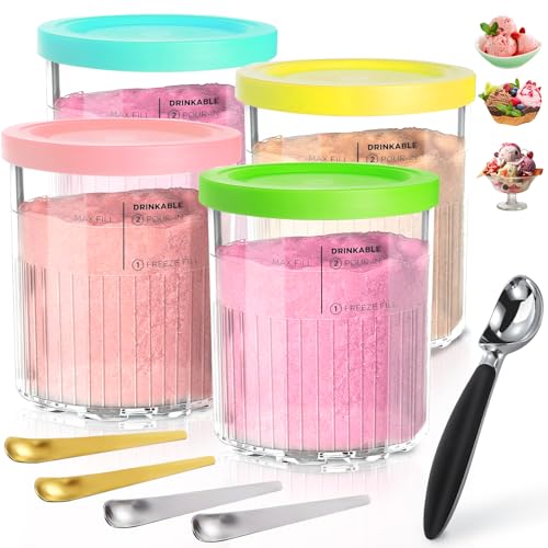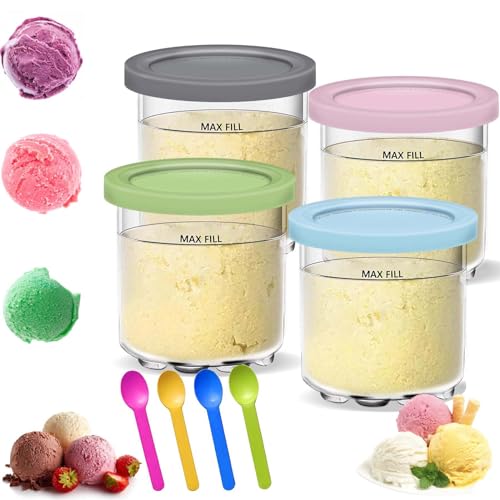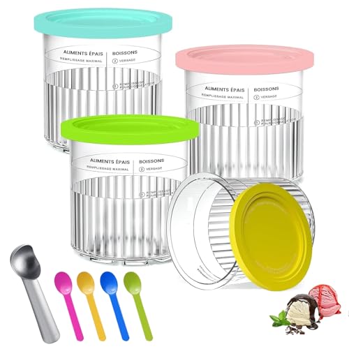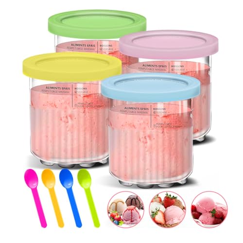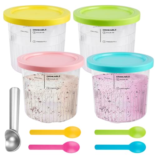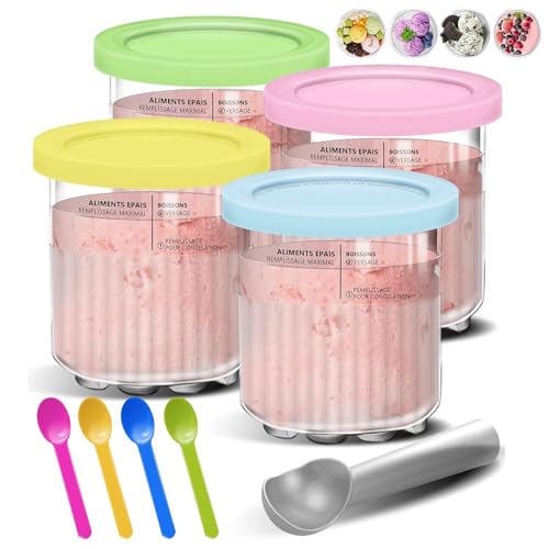 Ninja Creami Ice Cream Behållare med 4 Färgglada Skedar - Glass Pints Kopp för NC301 NC300 NC299AMZ-Serien