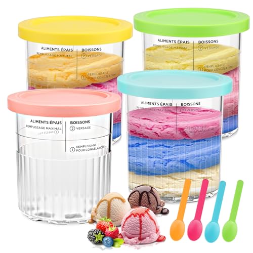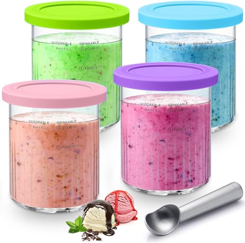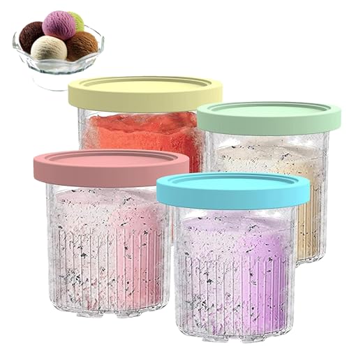 Euleryoo 4 Stycken Reservglas Med Lock för Glassmaskin - Lämpliga för Isbehållare Nc500 Nc501, Deluxe Pint-Behållare för Ninja Creami 11-i-1