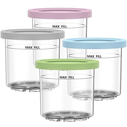 GoMaihe Behållare ersättning för Ninja Creami Pints och lock – 4-pack, 47 ml kopp kompatibel med NC301 NC300 NC299AMZ-serien glassmaskin, BPA-fri diskmaskinssäker läckagesäker, rosa/grön/grå/blå