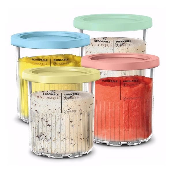Vione Ersättning för Ninja Creami Deluxe Pints och lock - 4-pack, 60 ml. Pint-behållare kompatibel med NC501, NC500-serien - BPA-fri, diskmaskinssäker, blandade färger