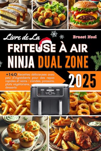 Livre de La Friteuse à Air Ninja Dual Zone: Plus de 140 Recettes délicieuses avec peu d’ingrédients pour des repas rapides et sains : viandes, ... Inclut des informations nutritionnelles