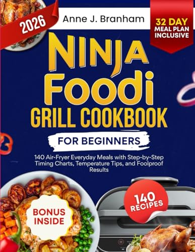 Ninja Foodi Grill Cookbook for Beginners: 140 Air-Fryer Everyday Meals with Step-by-Step Timing Charts, Temperature Tips, and Foolproof Results