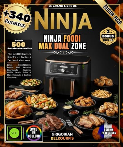 LE GRAND LIVRE DE NINJA FOODI MAX DUAL ZONE: Plus de 340 Recettes Simples et Faciles | Frites Croustillantes, Poulet Rôti, Desserts Gourmands, Légumes ... Sains & Plats Complets à Réaliser Chez Vous