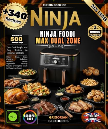 THE BIG BOOK OF NINJA FOODI MAX DUAL ZONE: Over 340 Simple and Easy Recipes | Crispy Fries, Roast Chicken, Delicious Desserts, Grilled Vegetables, Healthy Snacks & Complete Meals to Make at Home