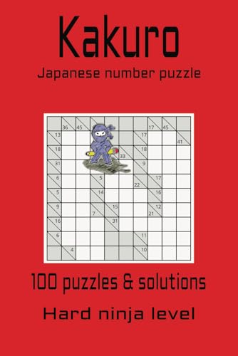Kakuro Japanese number puzzle: Hard ninja level game for anyone that loves number games [6 x9] inches 100 puzzles with solutions on the back. Perfect brain teasing gift for math lovers.