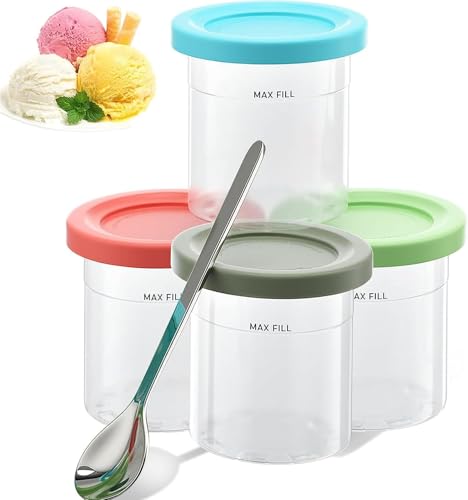 4 stycken Creami-behållare för Ninja Creami-glassmaskin, isbehållare för glass, med lock, med sked, kompatibel med ICE MAKER NC299AM C300S-serien
