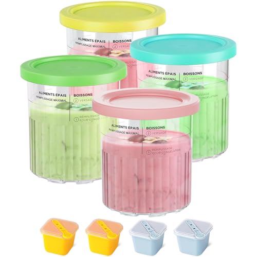 Glassbehållare för glass, set om 4 med lock, behållare, hemlagad för glass, reservbehållare för Ninja Creami med lock, kompatibel med NC301 NC300-serien glassmaskiner