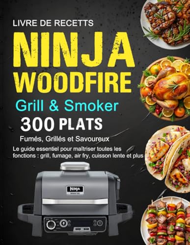 Livre de Recettes Ninja Woodfire Grill & Smoker: 300 Plats Fumés, Grillés et Savoureux : Le guide essentiel pour maîtriser toutes les fonctions : grill, fumage, air fry, cuisson lente et plus