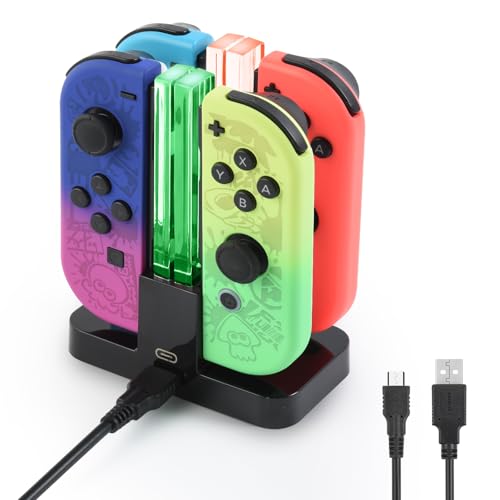 ELUTENG Laddningsdocka för 4-i-1 Switch laddare för Nintendo Switch JoyCon med LED-indikator, 2H snabbladdning för 4 handkontroller, laddningsstation för styrenhet med Type-C-kabel, svart