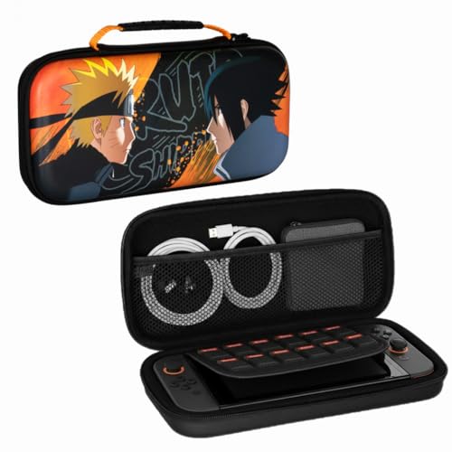 Konix Naruto Shippuden Schutzhülle und Tragetasche für Nintendo Switch 2 - Zubehörfach und 8 Spielefächer - Motiv Naruto und Sasuke - Schwarz