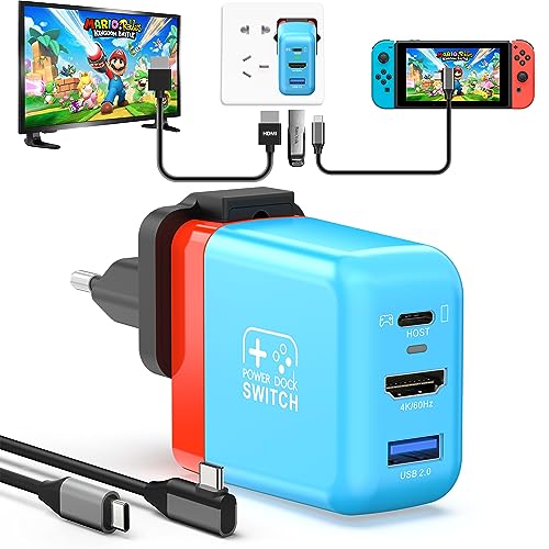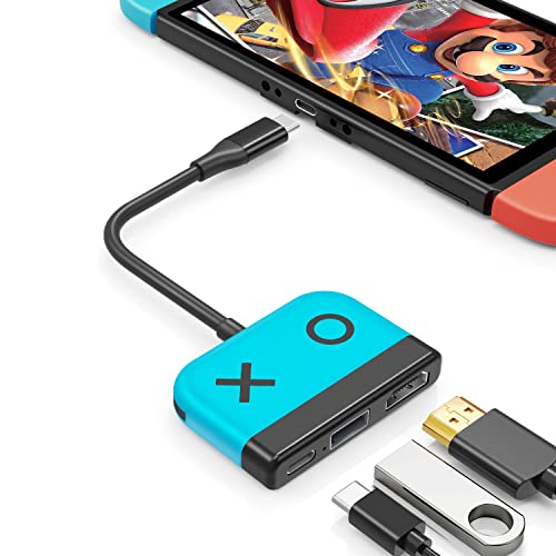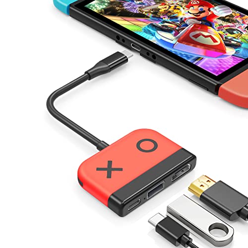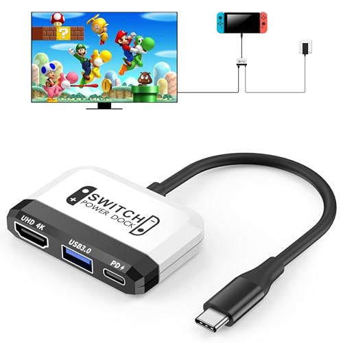Switch Dock for Nintendo Switch OLED, 3 in 1 Switch TV Adapter with 4K 60Hz HDMI, USB 2.0 Port, Type C 30W Charger, Portable Switch Docking Station Travel, for Samsung Dex S23, MacBook