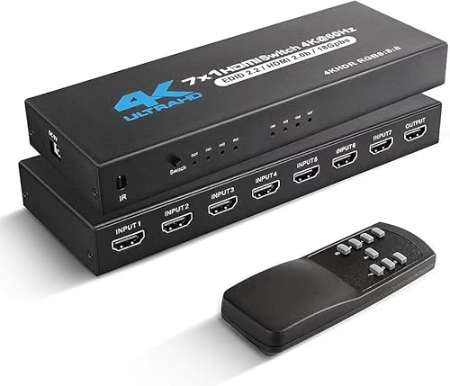 INF HDMI Switch 7x1 med 4K@60Hz och IR-fjärrkontroll, med olika HDMI-enheter inklusive för Nintendo Switch, Xbox Series X, PC, bärbara datorer och Blu-ray-spelare, Roku