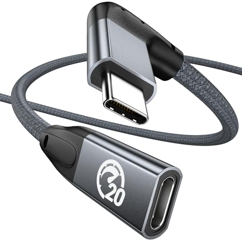 Rätvinkel USB C Förlängningskabel 0,2M, UseBean 90 Degree USB C 3.2 Gen 2 20Gbit/s Hane till Hona typ C 4K Video Förlängningssladd, för USBC Dock, MacBook Pro/Air, iPad Pro, Nintendo Switch
