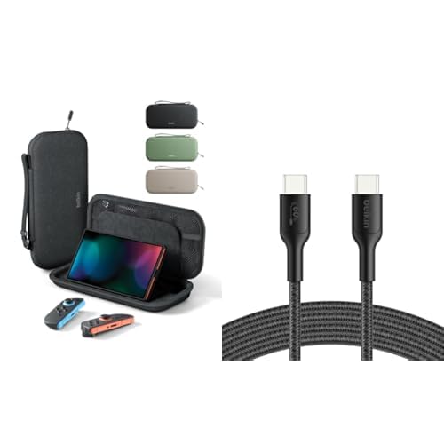 Belkin Gaming Nintendo Switch 2 Case Travel Bag with AirTag Holder & Game Card Storage Pocket + Gaming USB-C to USB-C Cable 60W (6.6ft), Braided Type C Charger Fast Charging