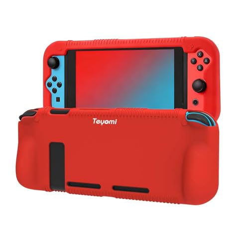 Fodral kompatibelt med Nintendo Switch, Teyomi Protective Silicone Fodral Grip Cover with 2 Storage Slots kompatibelt med Gaming Cards, Shock Absorption and Scratch Protection(Black)