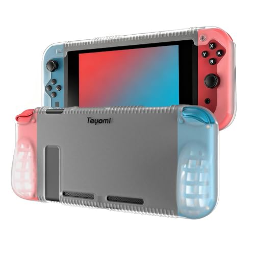 Fodral kompatibelt med Nintendo Switch, Teyomi Silicone Protective Grip Fodral Cover with 2 Storage Slots kompatibelt med Playing Cards, Shock Absorption and Anti-Scratch (Clear)