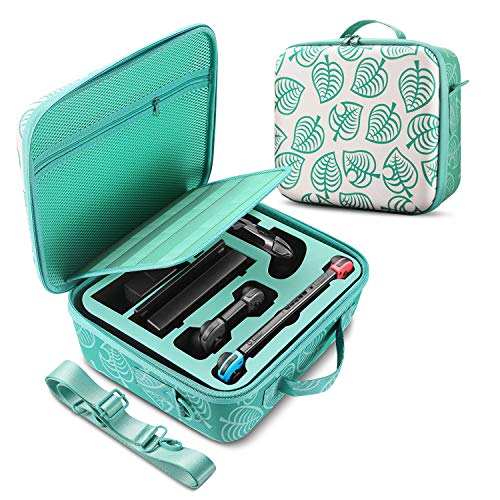 TNP Travel Hard Shell EVA bärbart kit fodral för Nintendo Switch ny horisont djur löv kors, switch Lite, Joy-Cons, dockningsstation, AC-adapter, HDMI-sladd, spelpatroner, förvaringsväska