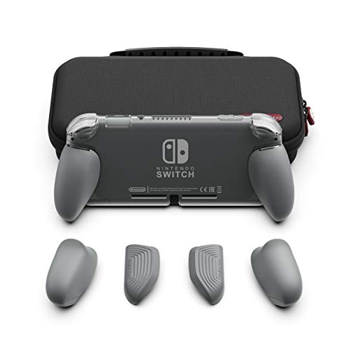 Skull & Co. GripCase Lite Bundle: A Comfortable Protective Case with Replaceable Grips [to fit All Hands Sizes] for Nintendo Switch Lite [with Carrying Case] - Gray