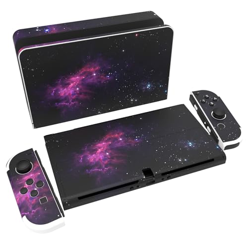 PlayVital Klistermärke för Nintendo Switch OLED,Anti-repor Skydds Hudklistermärke för Switch OLED,Skins Stickers Hud Skyddande för Switch OLED-Konsole & Joycon & Dock & Grip-Lila Nebulosa