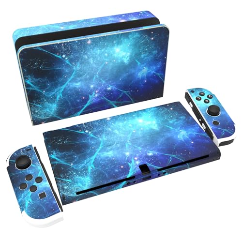 PlayVital Klistermärke för Nintendo Switch OLED,Anti-repor Skydds Hudklistermärke för Switch OLED,Skins Stickers Hud Skyddande för Switch OLED-Konsole & Joycon & Dock & Grip-Blå Galax
