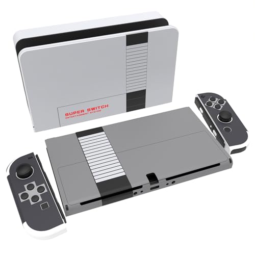 PlayVital Klistermärke för Nintendo Switch OLED,Anti-repor Skydds Hudklistermärke för Switch OLED,Skins Stickers Hud Skyddande för Switch OLED-Konsole & Joycon & Dock & Grip-Klassiker i NES-stil