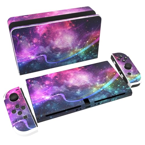 PlayVital Klistermärke för Nintendo Switch OLED,Anti-repor Skydds Hudklistermärke för Switch OLED,Skins Stickers Hud Skyddande för Switch OLED-Konsole & Joycon & Dock & Grip-Lysande Galax