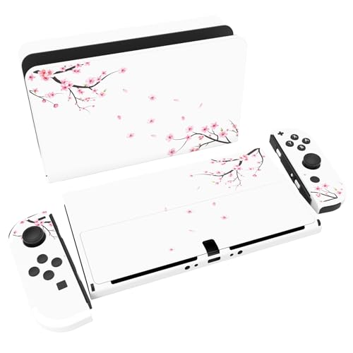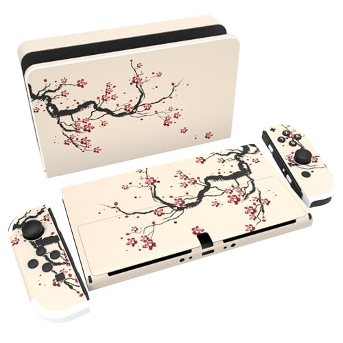 PlayVital Klistermärke för Nintendo Switch OLED,Anti-repor Skydds Hudklistermärke för Switch OLED,Skins Stickers Hud Skyddande för Switch OLED-Konsole & Joycon & Dock & Grip-Blommande Plommonblommor