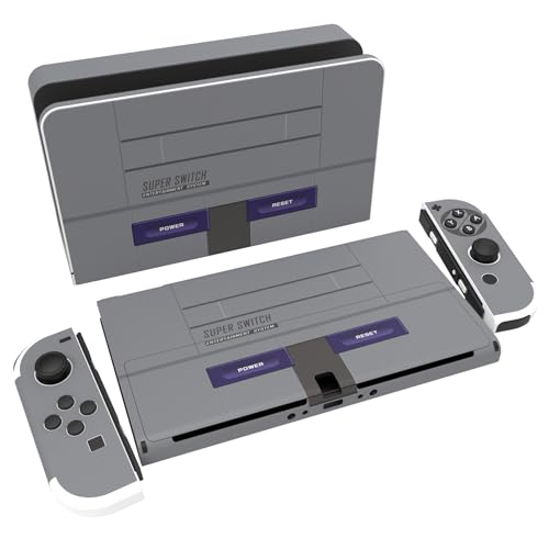 PlayVital Klistermärke för Nintendo Switch OLED,Anti-repor Skydds Hudklistermärke för Switch OLED,Skins Stickers Hud Skyddande för Switch OLED-Konsole & Joycon & Dock & Grip-Klassiker i SNES-stil