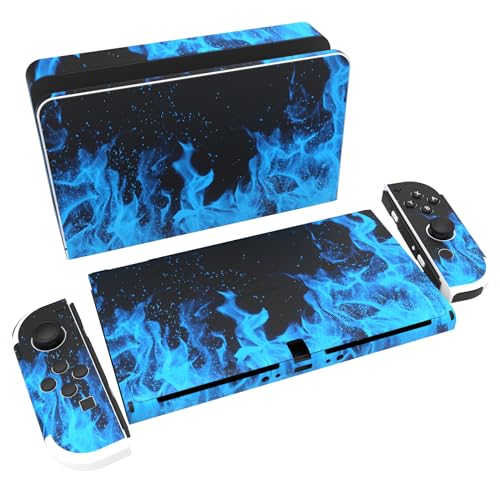 PlayVital Klistermärke för Nintendo Switch OLED,Anti-repor Skydds Hudklistermärke för Switch OLED,Skins Stickers Hud Skyddande för Switch OLED-Konsole & Joycon & Dock & Grip-Blå Flamma