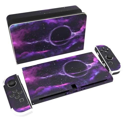 PlayVital Klistermärke för Nintendo Switch OLED,Anti-repor Skydds Hudklistermärke för Switch OLED,Skins Stickers Hud Skyddande för Switch OLED-Konsole & Joycon & Dock & Grip-Lila Djup Rymd