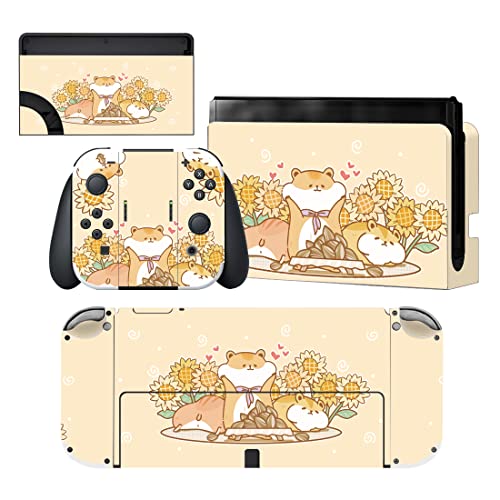 PlayVital Klistermärke för Nintendo Switch OLED,Anti-repor Skydds Hudklistermärke för Switch OLED,Skins Stickers Hud Skyddande för Switch OLED-Konsole & Joycon & Dock & Grip-Hamster Solros
