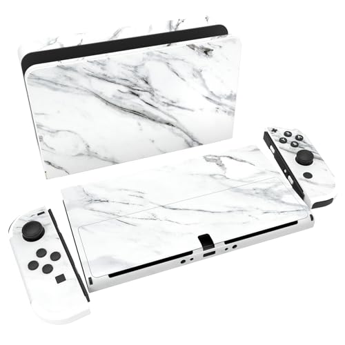 PlayVital Klistermärke för Nintendo Switch OLED,Anti-repor Skydds Hudklistermärke för Switch OLED,Skins Stickers Hud Skyddande för Switch OLED-Konsole & Joycon & Dock & Grip-Sömlös Vit Marmor