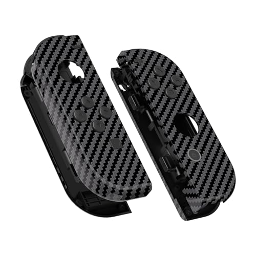 eXtremeRate Soft Touch Grip Grafit Kolfiber Mönstrad Joycon Handheld Controller Hölje med Kompletta Knappar, DIY Ersättningsfodral för Nintendo Switch & Switch OLED Modell Joy-Con – Konsol Skal Ingår INTE