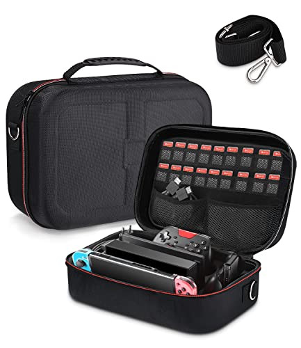 SOBEAU Fodral kompatibelt med Nintendo Switch/Nintendo Switch OLED, hårt bärande Switch-fodral för NS Switch-konsolen, Switch Dock, HDMI-kabel, Pro Controller och andra tillbehör med 18 spelkassetter