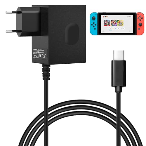 45 W switch laddningskabel strömförsörjning kompatibel med Nintendo Switch, Steam Deck, Switch Lite, Switch OLED, Switch Dock och Switch Pro Controller, stöder TV-läge med 1,5 m kabel