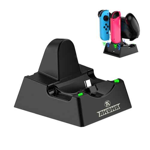 AKUMA Cyber V02 laddningsstation för Nintendo Switch - Pro Controller, Joy-Cons, OLED Switch/Switch/Lite Switch Intelligent Charging - svart
