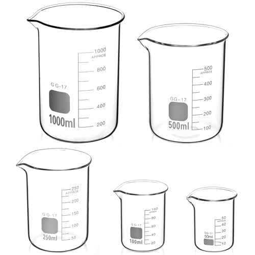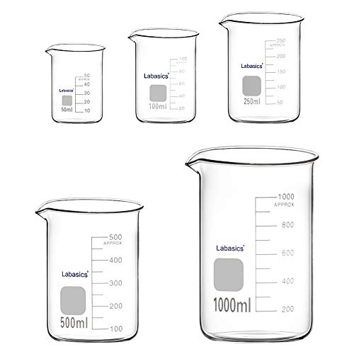 Labasics Glasbägare, Borosilikatglas Graderade Lågformade Griffin-bägare i 5 Storlekar, 50 ml/100 ml/250 ml/500 ml/1000 ml (1 L), Kombinationspaket