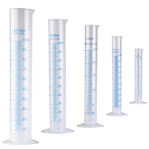 Milisten 5-delat mätcylinderset – mätcylinder plast i 50 ml 100 ml 250 ml 500 ml 1000 ml tryckt formad examen med klar