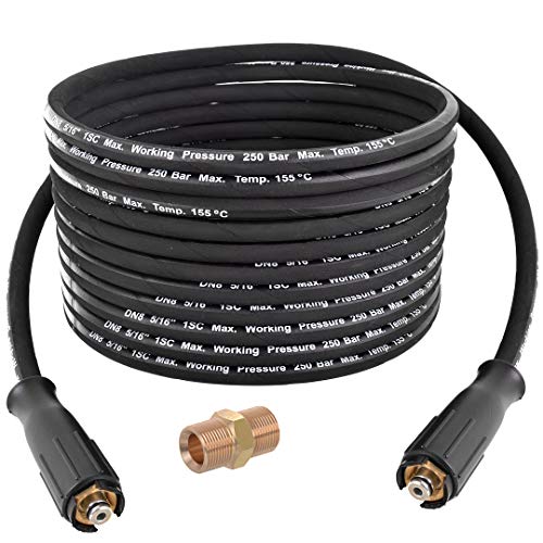 TECHKAR Slang för Högtryckstvätt + Gummislang med Stålnät - Kompatibel med Kärcher Wap Alto Kränzle och Andra W M22 Utvändig Gänga - 250bar M22 Kopplingsmutter Dubbel Nippel Knäckskydd 10m