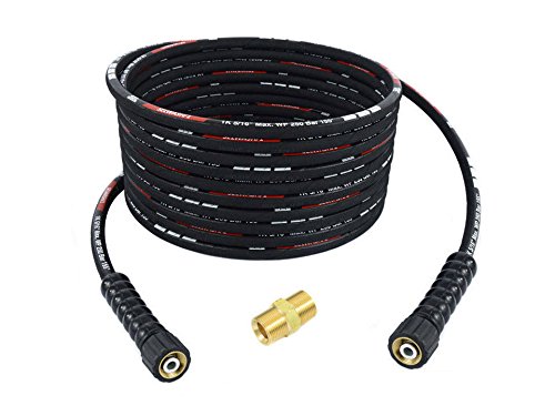 TECHKAR Slang för Högtryckstvätt + Gummislang med Stålnät - Kompatibel med Kärcher Wap Alto Kränzle och Andra W M22 Utvändig Gänga - 250bar M22 Kopplingsmutter Dubbel Nippel Knäckskydd 25m