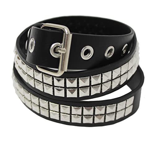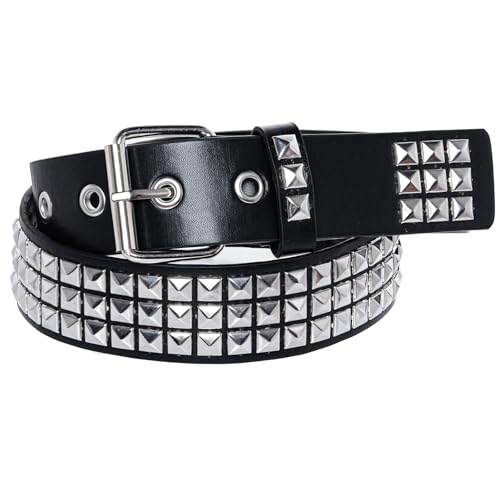 Y2K bälte nitbälte läder med 3 ljusa nitarmband, svart PU-läderbälte pyramidnitbälte, bälte med nitar nitbälte för jeans, byxor, gotisk metall punk kjol, kvinnor och män
