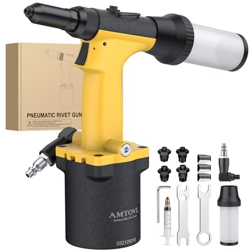 AMTOVL Pneumatisk nitmaskin - 1 000 kGF dragdäck nitmaskin sats luftnitar 2,4 mm 3,2 mm 4,0 mm 4,8 mm pneumatisk nitmaskin hållbar för tillverkning